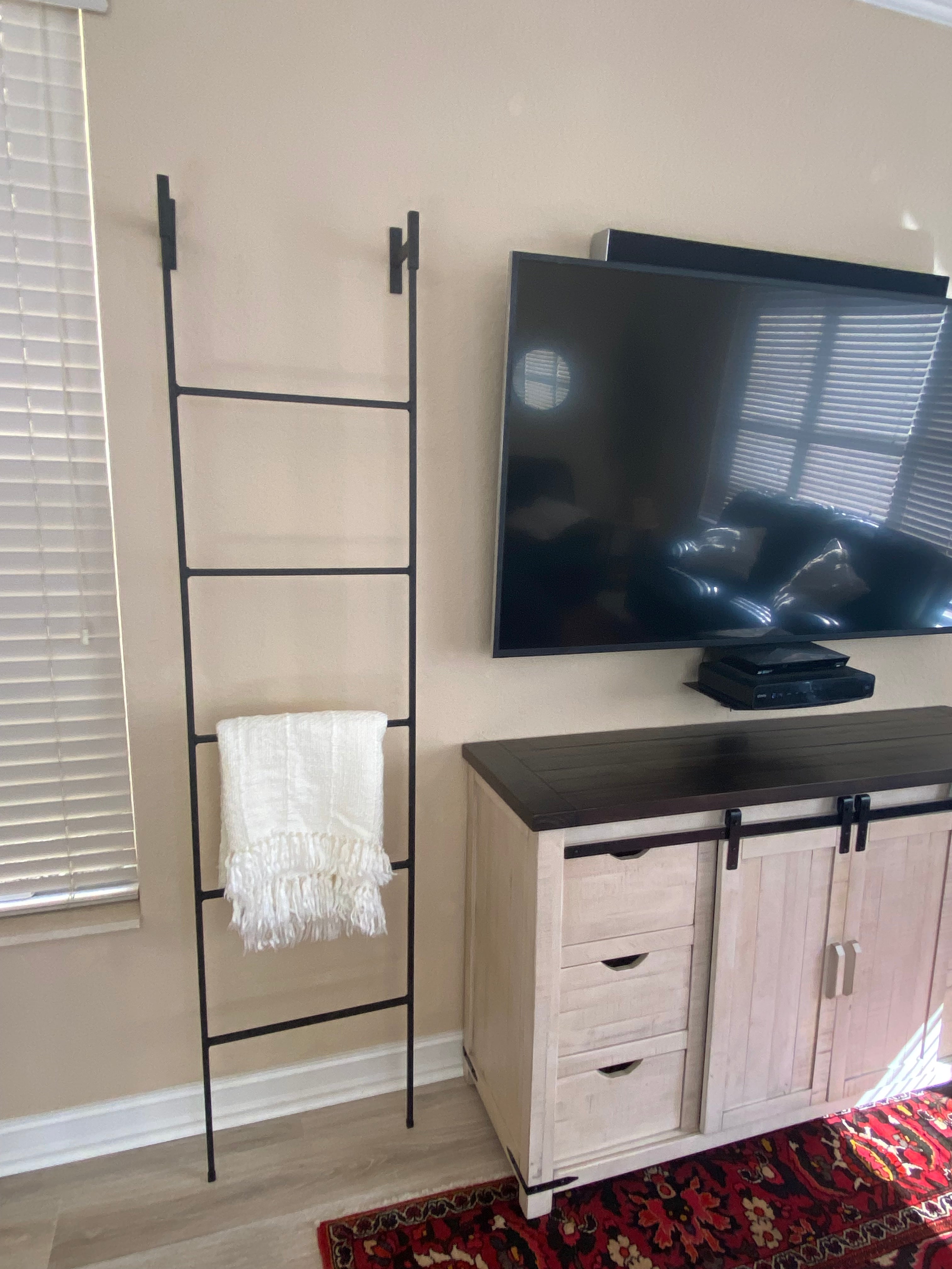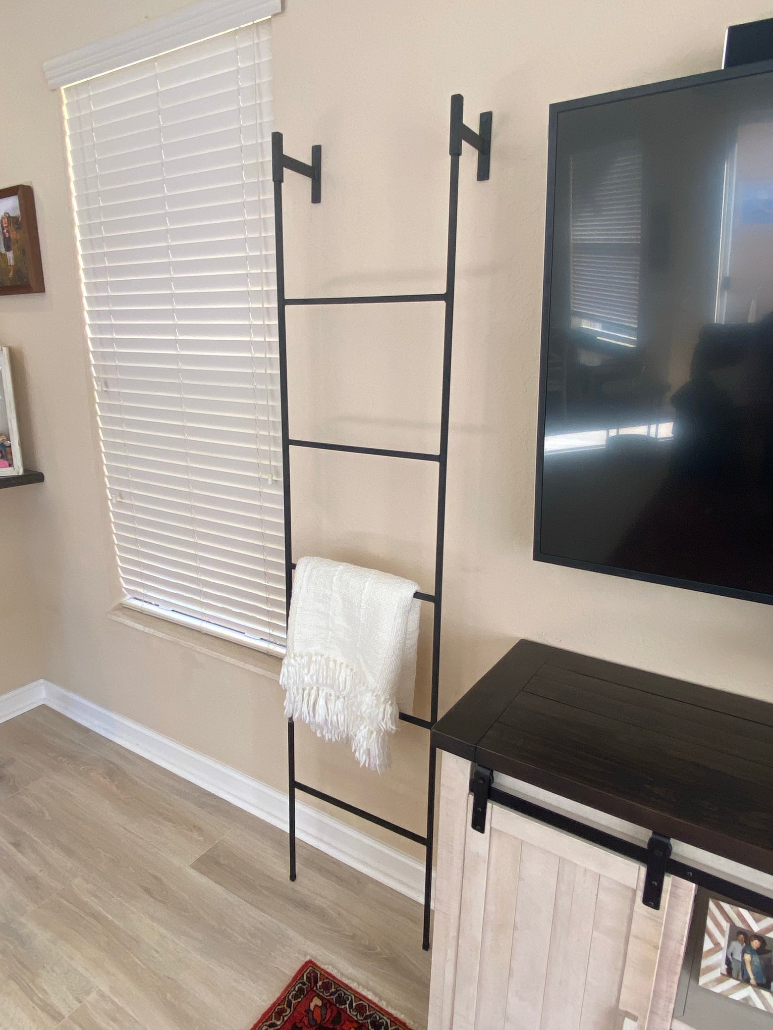Keep your blankets handy but out of the way with this decorative and durable steel blanket ladder. Mounted right to the wall, this ladder is the perfect way to show off all your declarative blankets, or even add it to your bathroom as the ultimate towel holder! This ladder comes in your choice of two widths and five heights and comes with 2 mounting legs that will secure your ladder to the wall. Want additional mounting hardware to completely hang your ladder from the wall? No problem! Send us a message and we will be happy to make you a custom order!