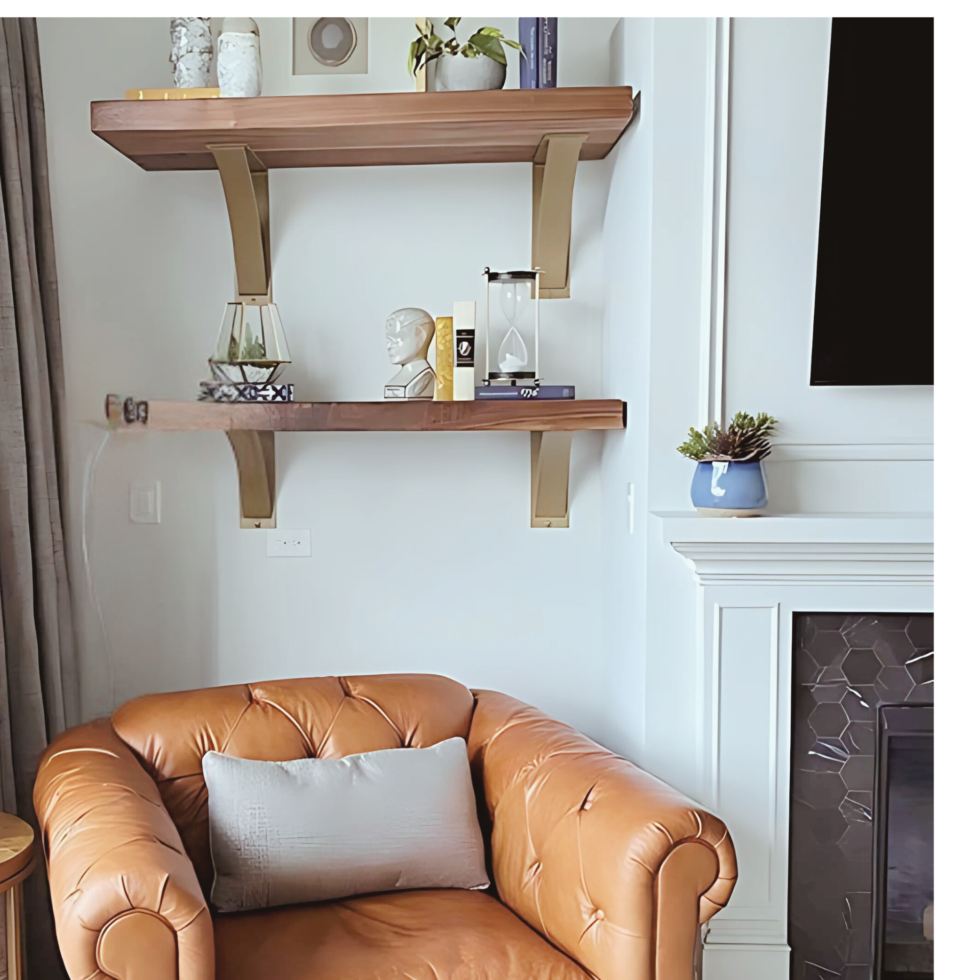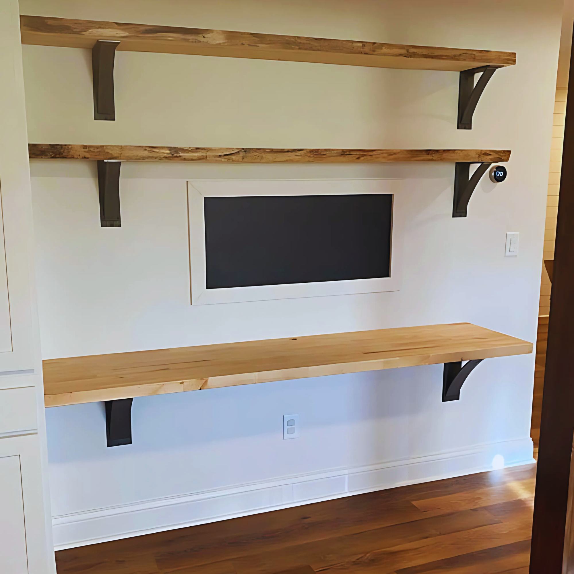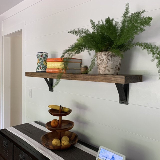 The Dibbles — our 3" wide industrial shelf bracket with a 2" curved support bar. The sweet spot between slim and sturdy. Built for floating shelves, mantels, countertops, picture ledges, and open kitchen shelving. Handmade in Central NY by a family shop with 53,000+ sales and 8,000+ five-star reviews.