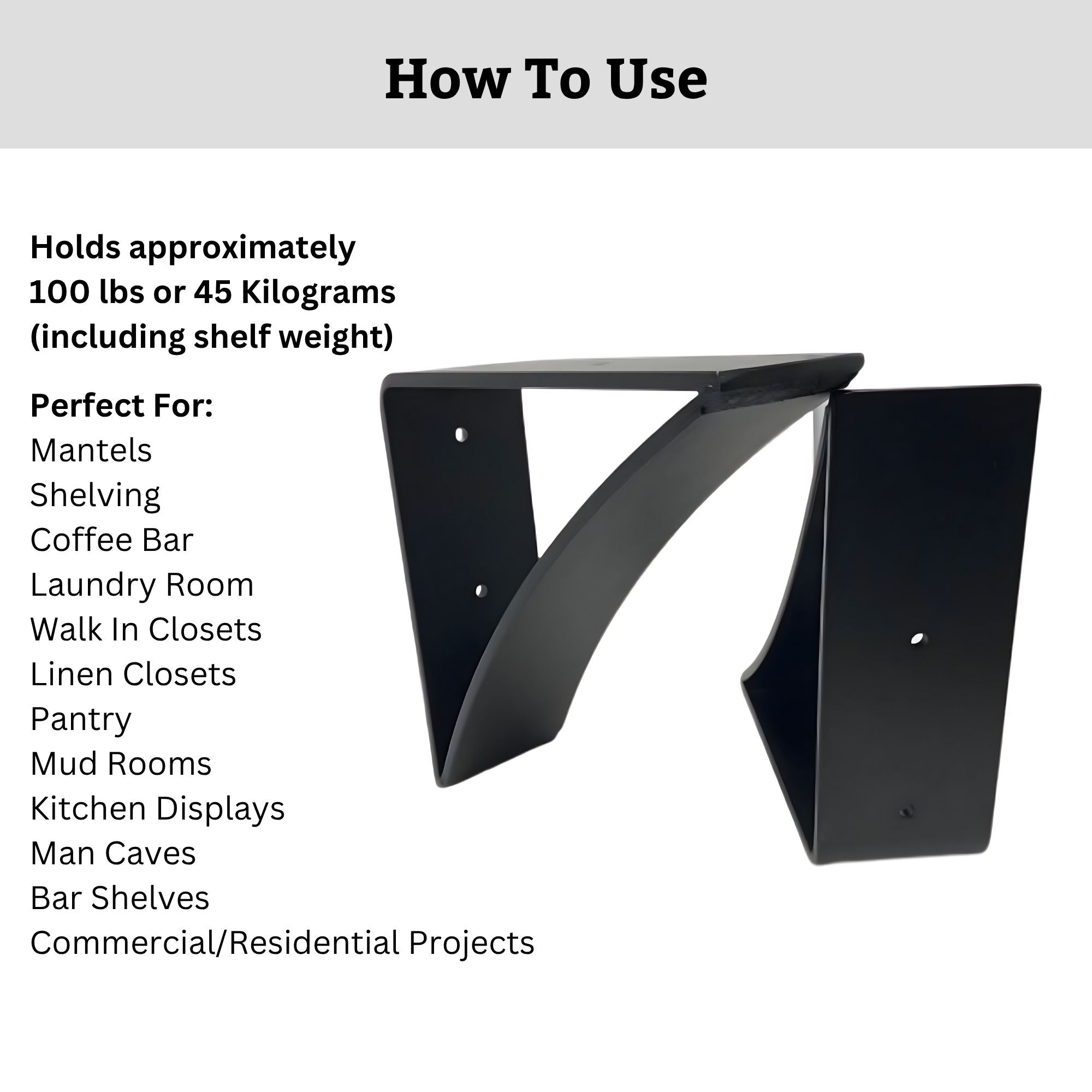 Complete your multipurpose needs with our Eleanor Bracket Supports. These minimalistic steel brackets are three inches wide and sport a three inch wide slightly curved welded support bar that connects each end, offering unmatched durability and industrial strength. Available in many sizes, these brackets can be used anywhere—interior, exterior, residential or commercial. Hang up shelves, organize tools, create a mantel—make your project idea a reality!