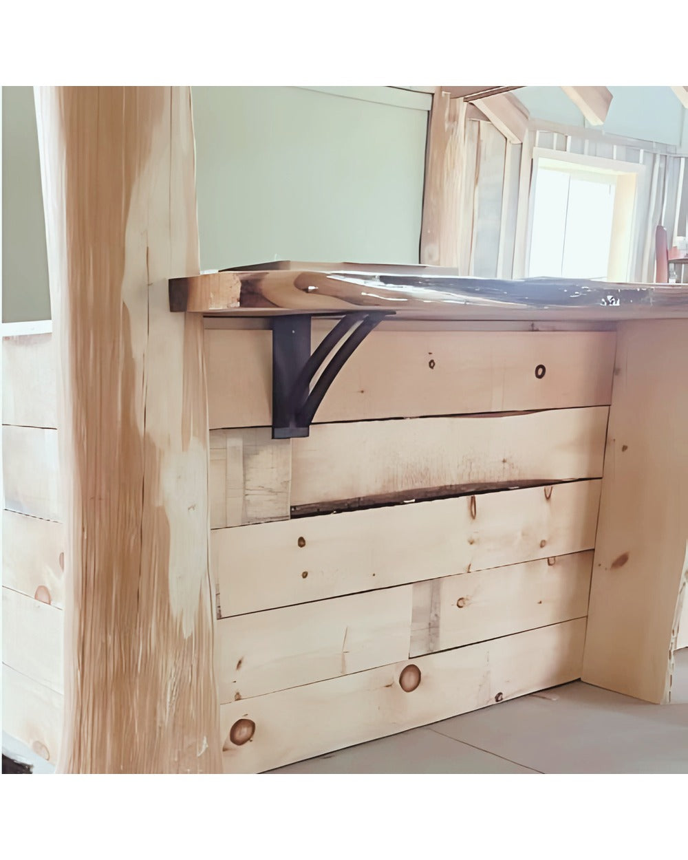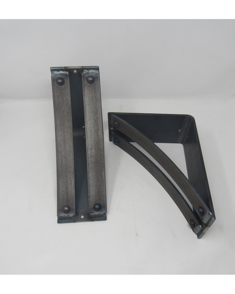 The Industrial Farm Co Jamestown Brackets are a stylish 4-inch-wide bracket with two 1.5-inch curved support bars with rivets added to the support bars.