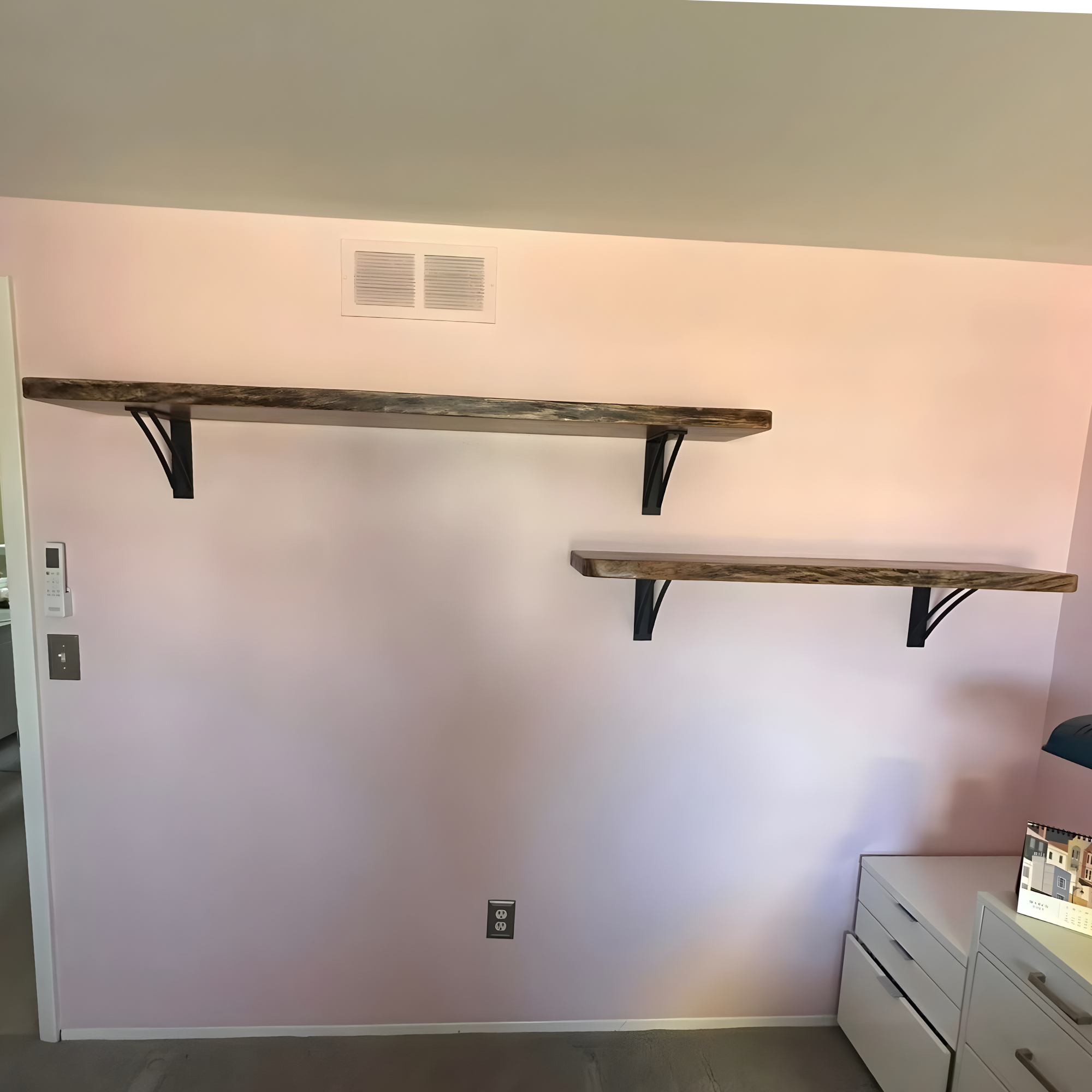 Please look at our FAQ at the bottom of the page for more information. Selecting Sizing: When ordering the first dimension is the depth x second dimension is the wall mount leg. For example 6 x 10 has a 6" depth (shelf) x 10" wall mount leg... a 10 x 6 has a 10" depth (shelf) x 6" wall mount leg. |