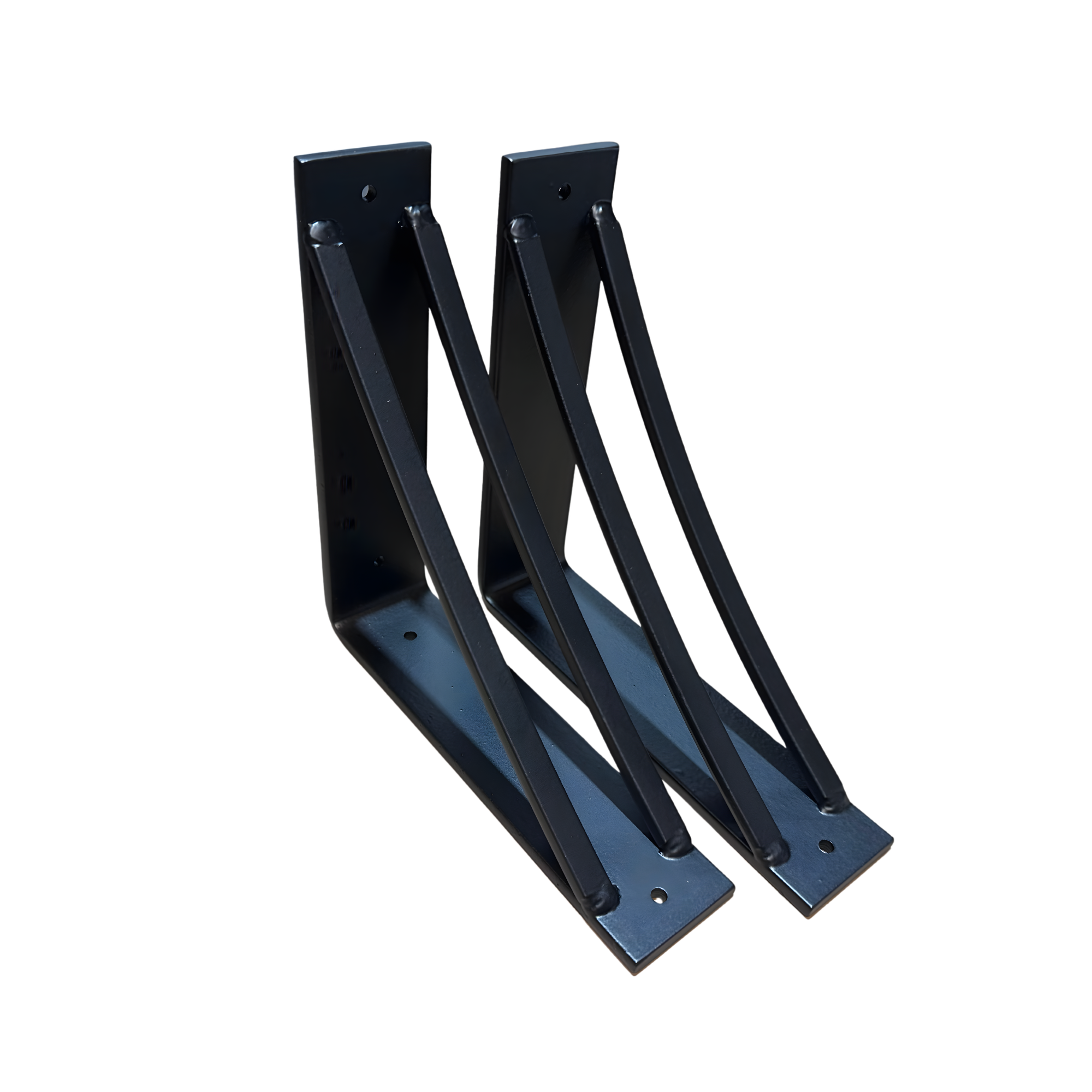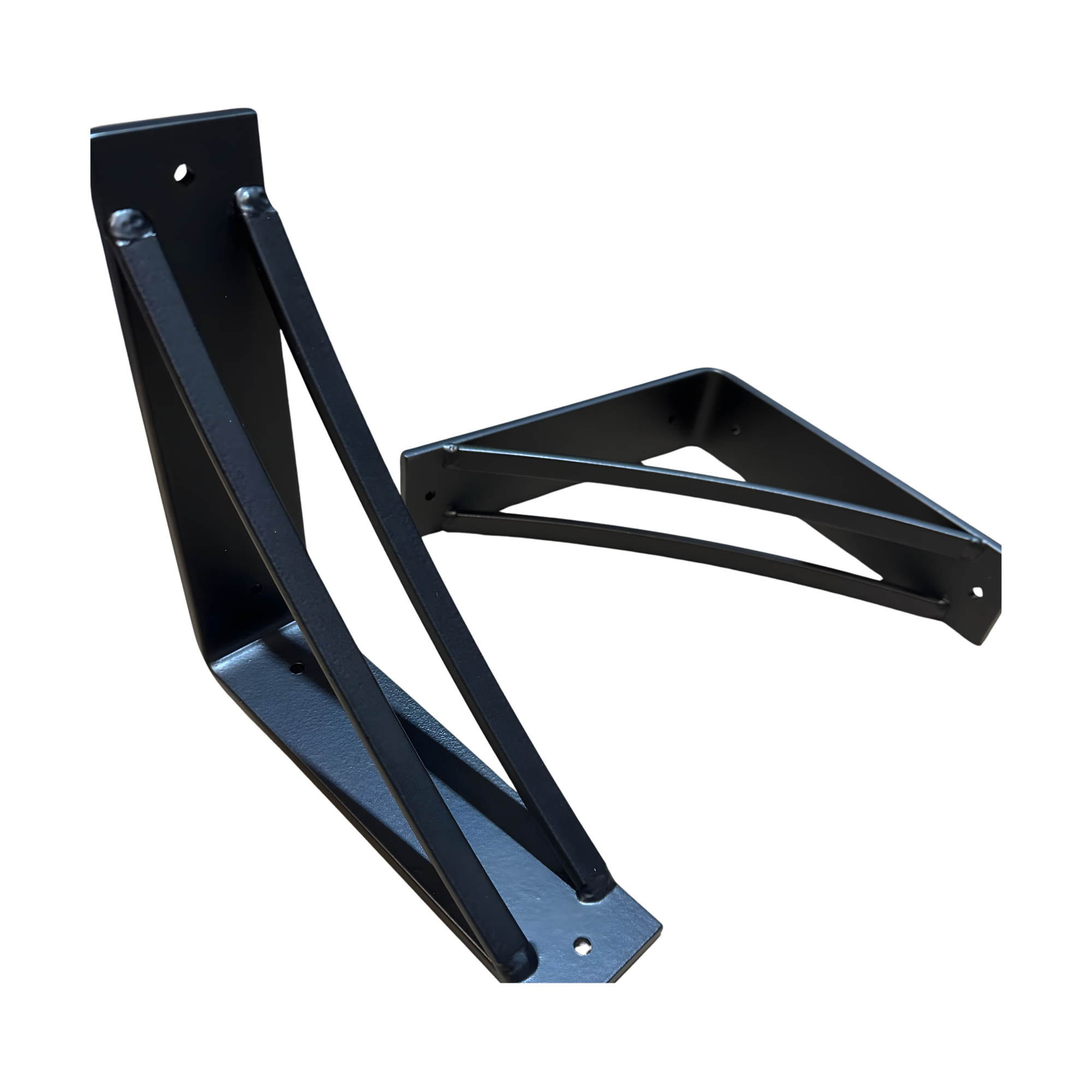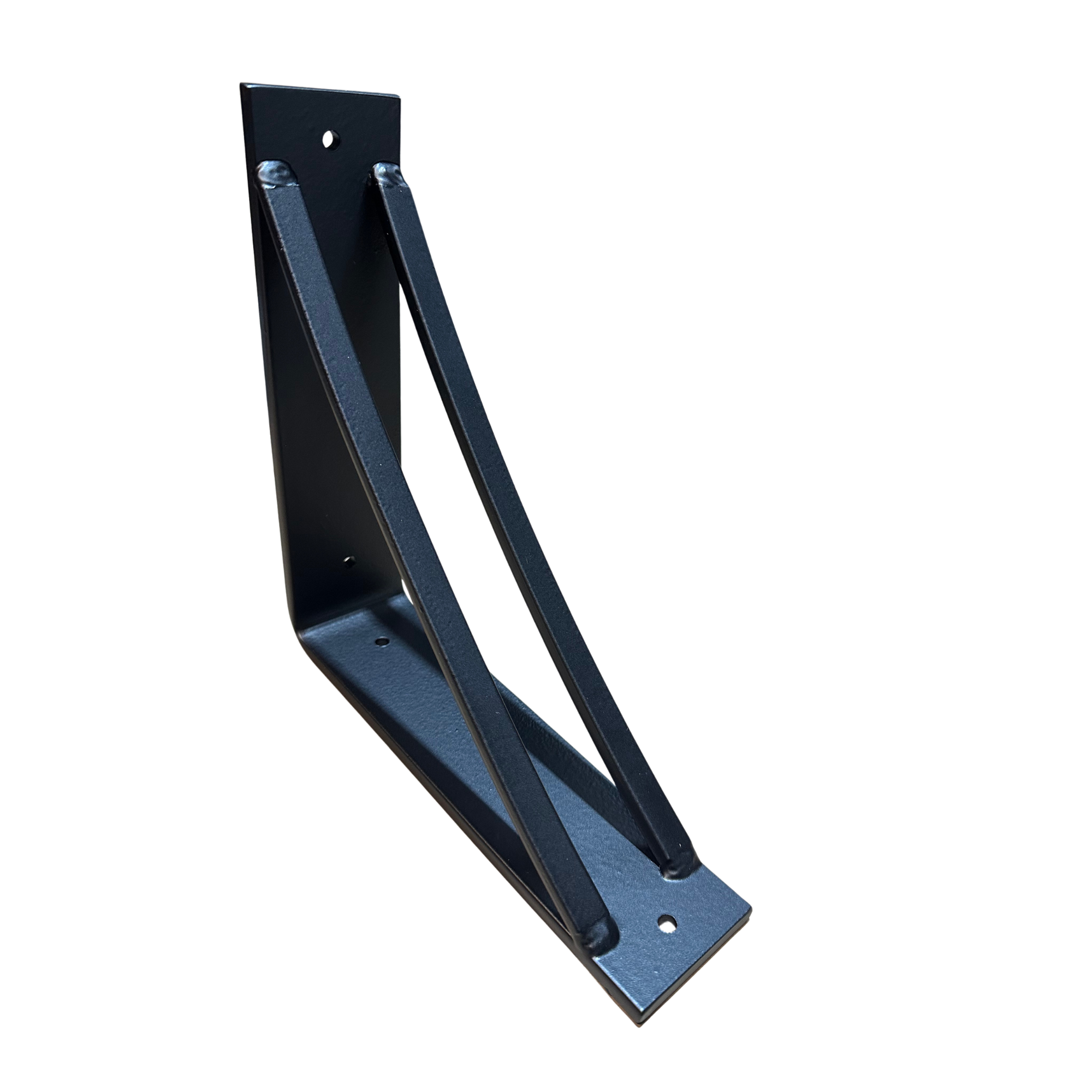 2" wide bracket with 1/2" wide flat bar supports and 1/4" thick solid steel construction.