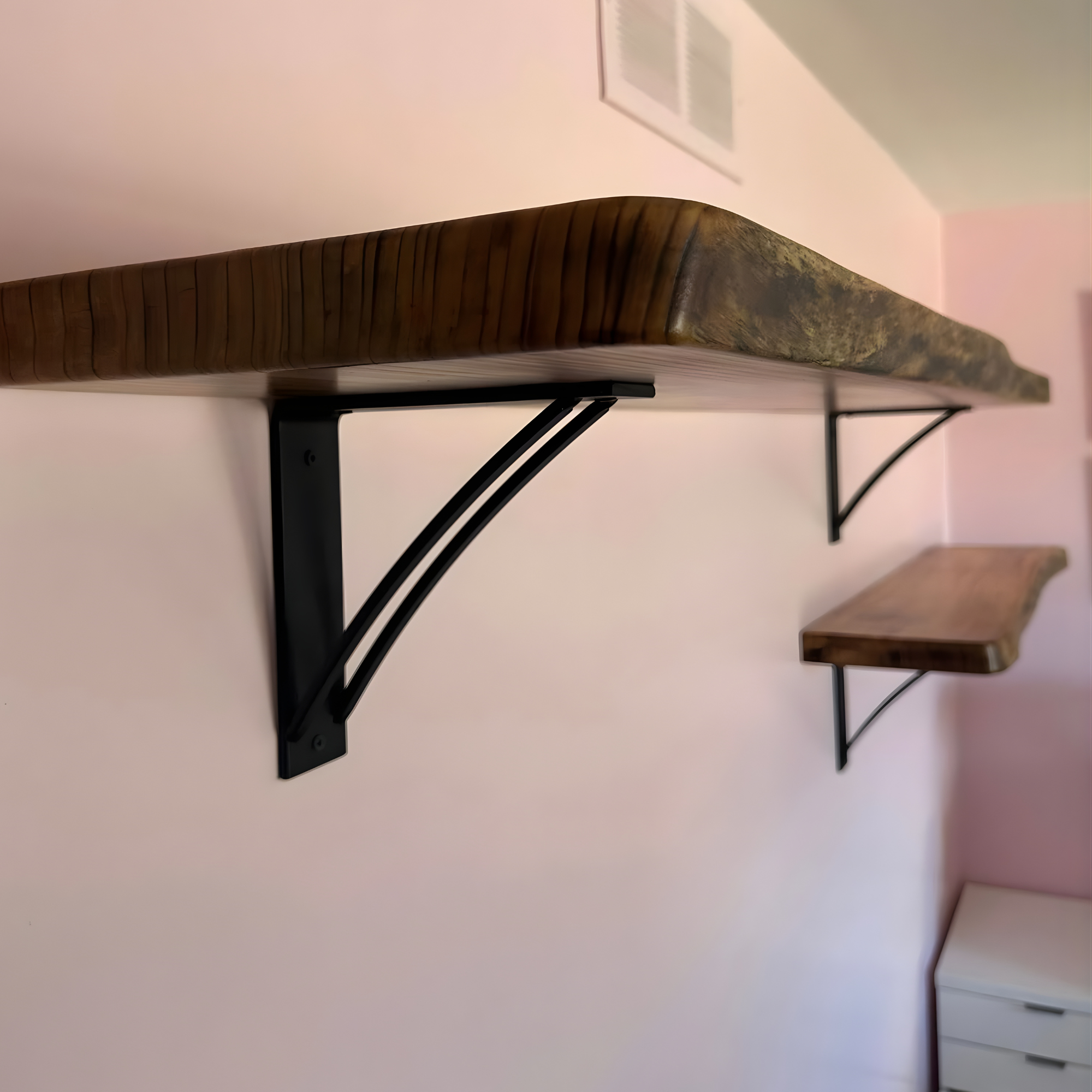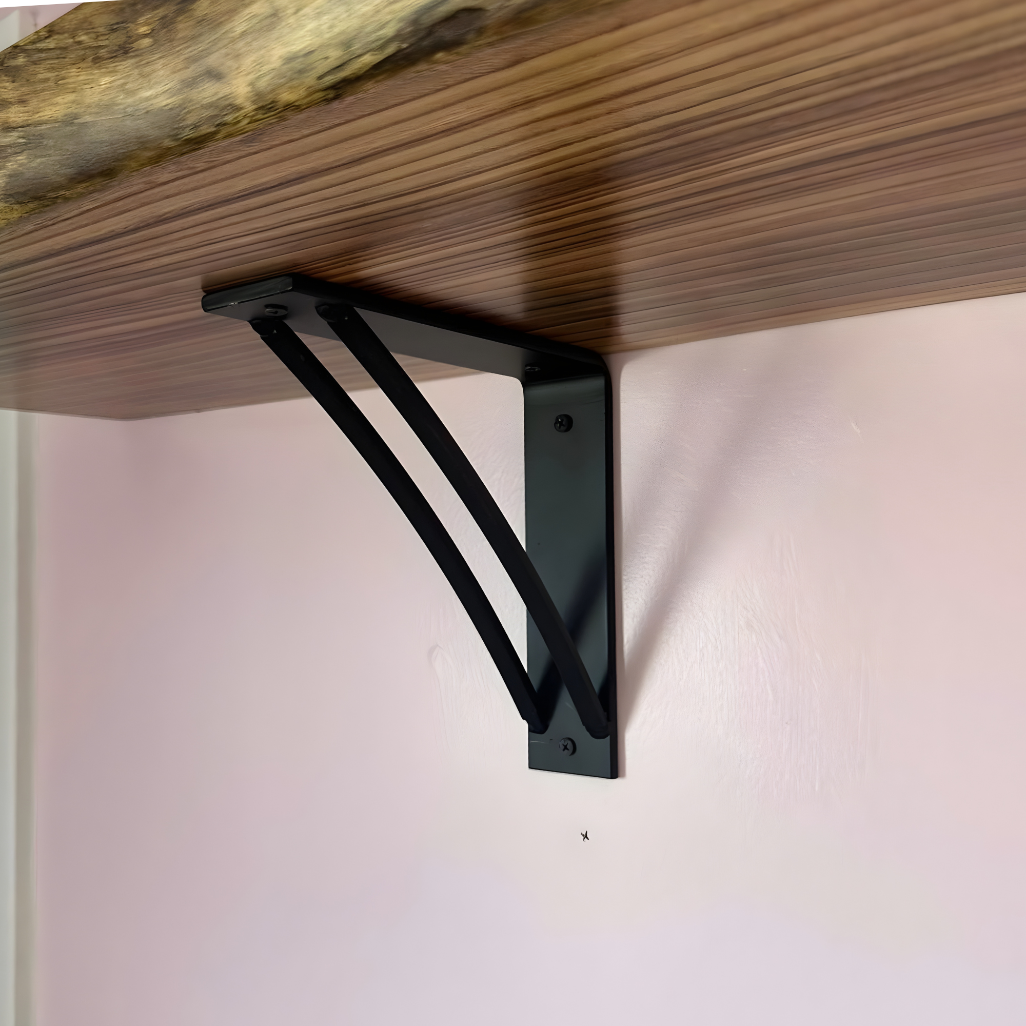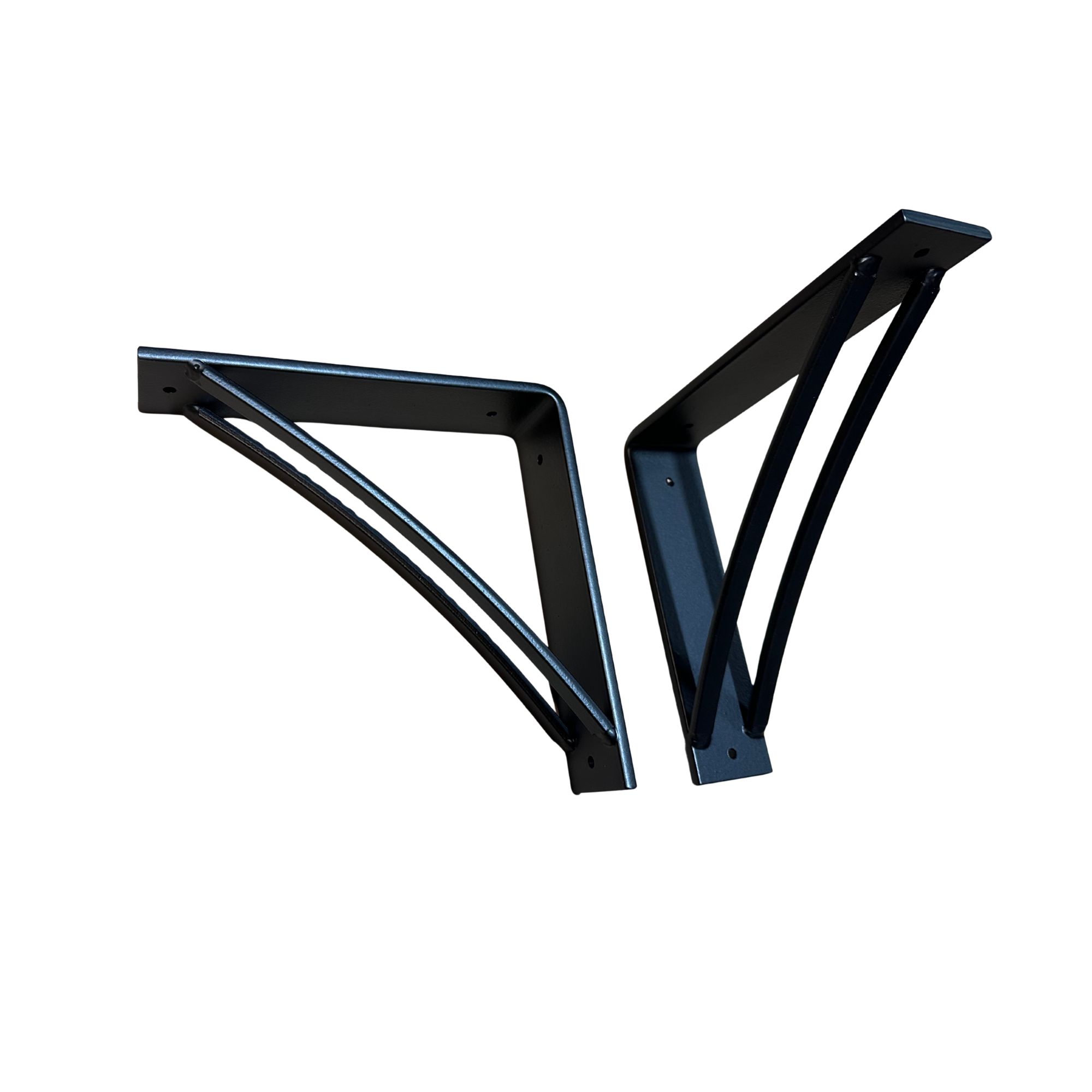 The Milarch — a decorative arched bracket featuring double curved flat bar supports for a bold, industrial edge.