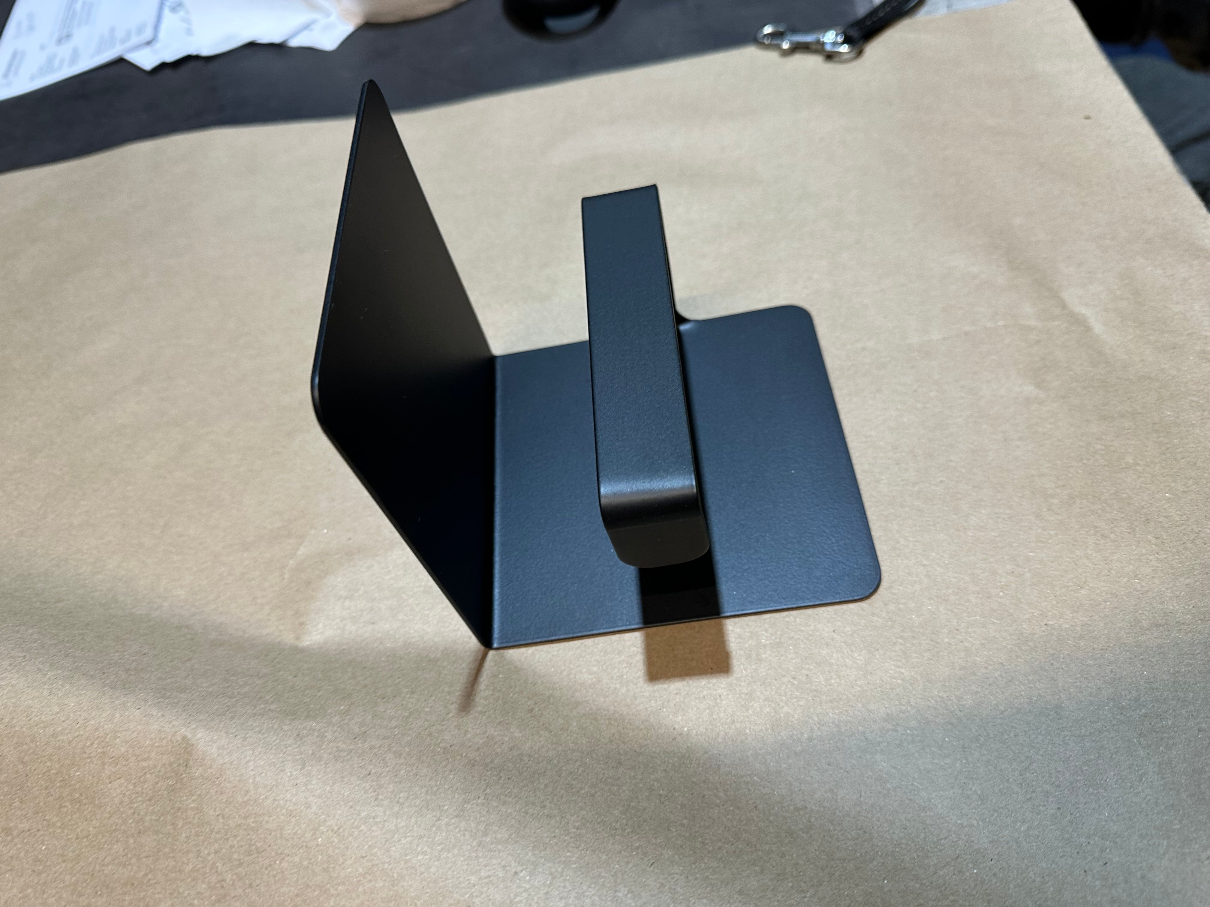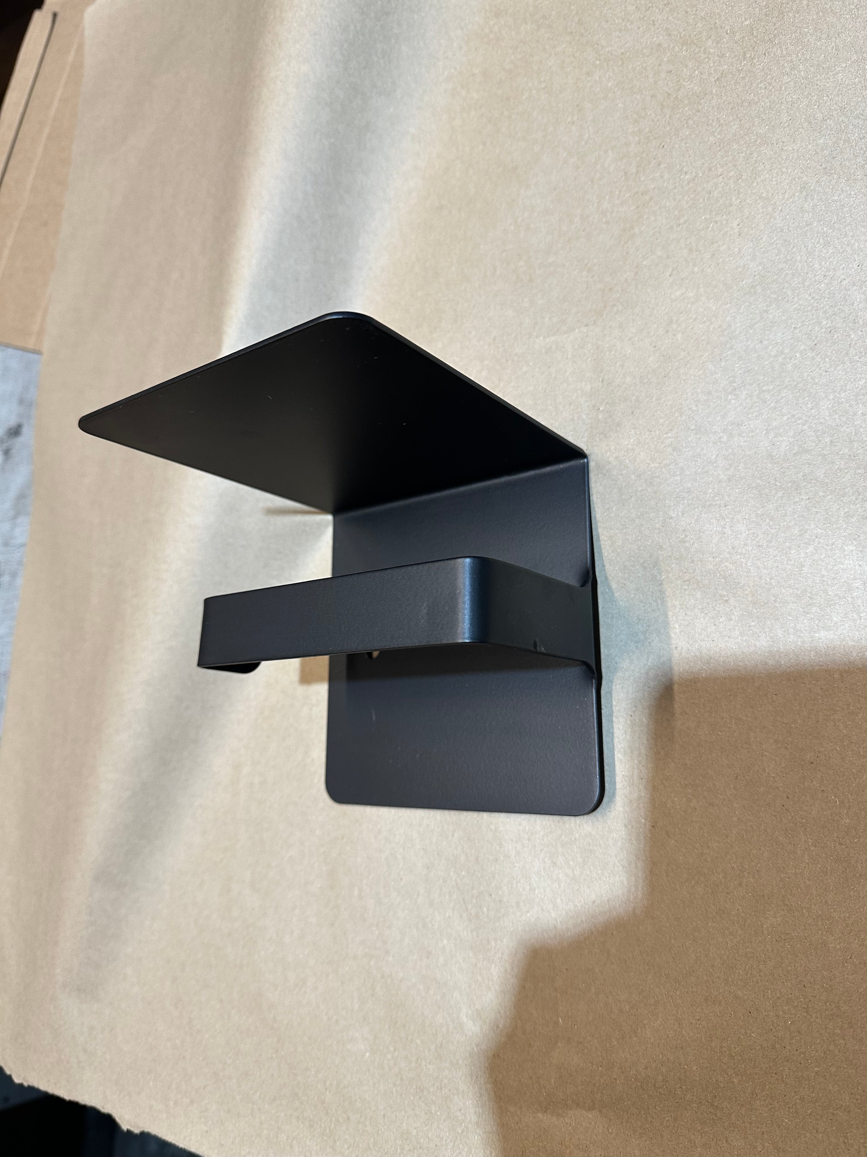The Cazenovia — a modern toilet paper holder with a built-in shelf, bent from a single piece of 14 gauge steel. No seams, no separate pieces to align, no extra holes in your wall. The integrated top shelf holds your phone, a small candle, room spray, or whatever you need within reach. One-piece construction means the shelf and holder are perfectly aligned every time — just mount and go. Made to order in Central NY by a family shop with 53,000+ sales and 8,000+ five-star reviews.