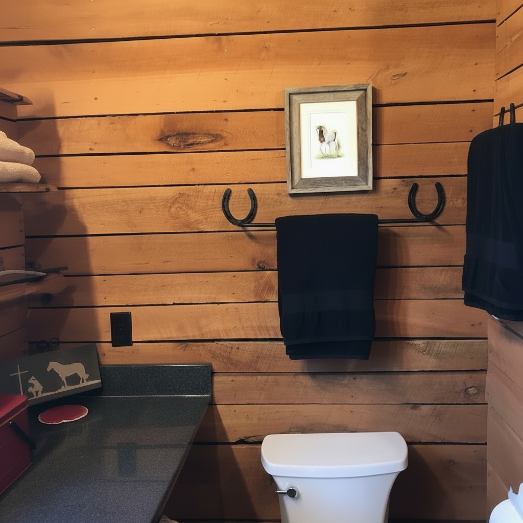 → Horse blankets & saddle pads → Bath towels & hand towels → Pool house & outdoor showers → Tack rooms & barns → Western-themed bathrooms