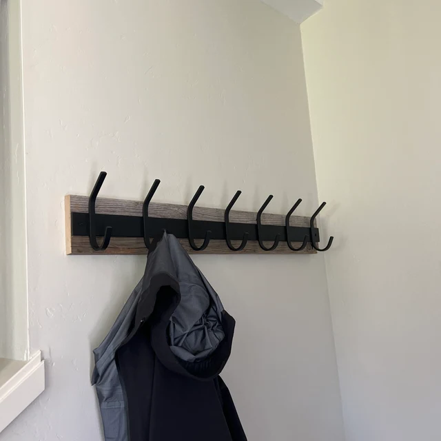 - Sturdy Construction: Boasting a 2-inch wide flat bar base and 1/2-inch wide hooks, this rack is built to withstand daily use and support a range of items.