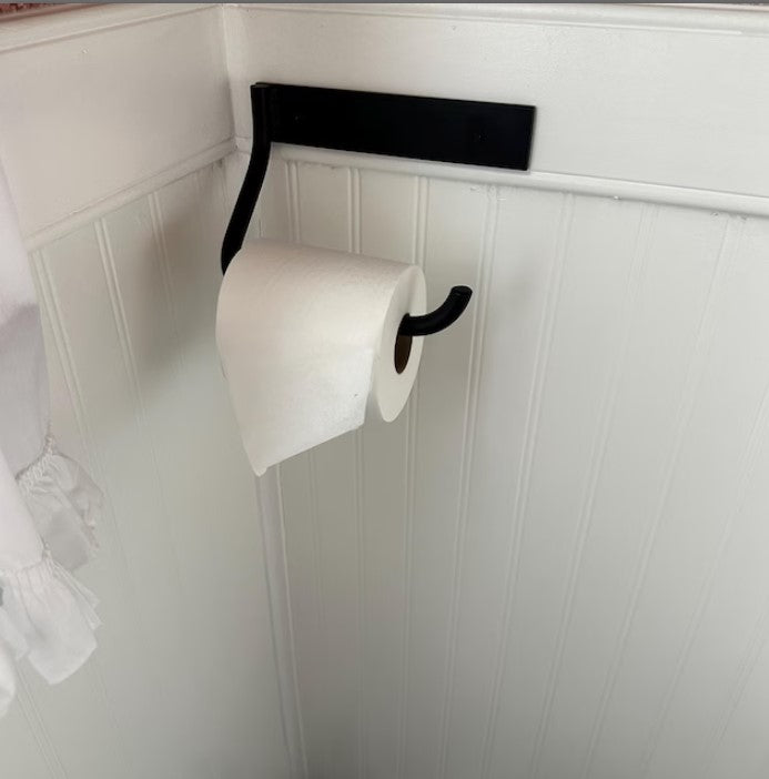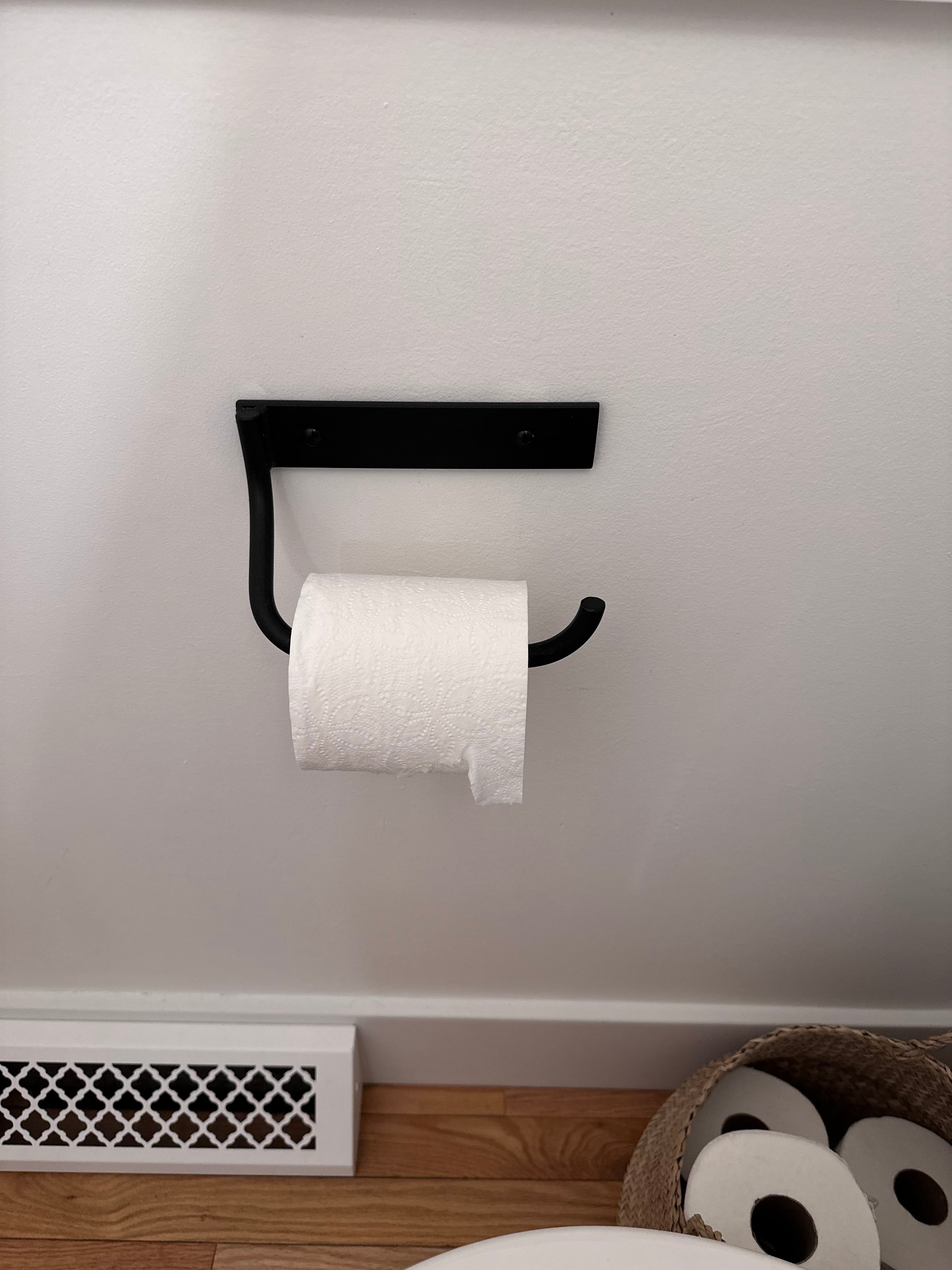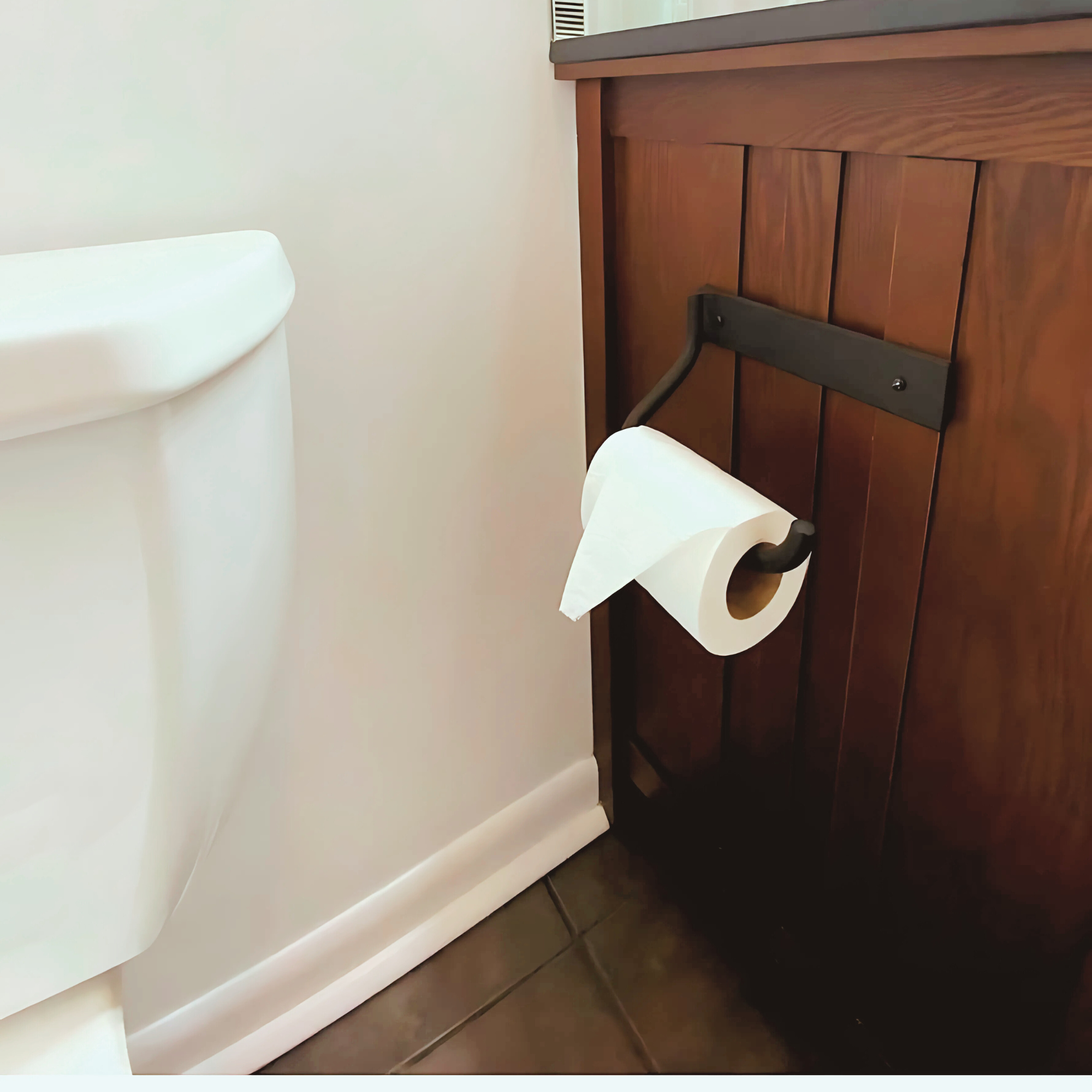 The Howlett Hill — a sleek, industrial toilet paper holder that mounts left or right to fit your bathroom layout. Handmade from ¼" thick solid steel with a ½" round bar to hold your roll. Simple, sturdy, and built to last. Made to order in Central NY by a family shop with 53,000+ sales and 8,000+ five-star reviews.