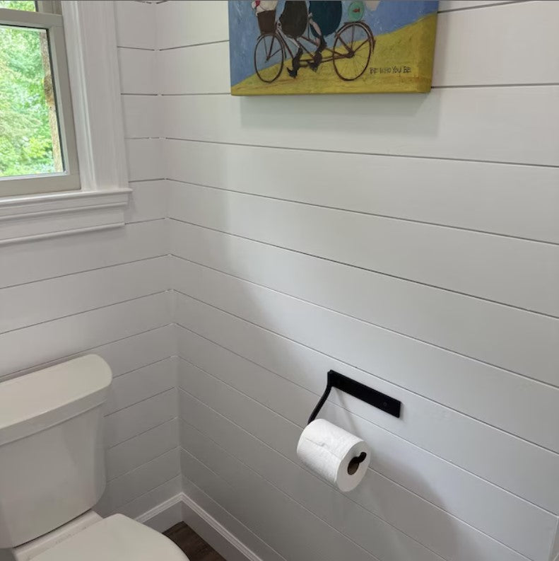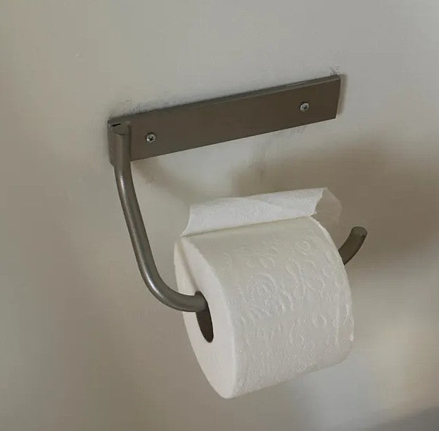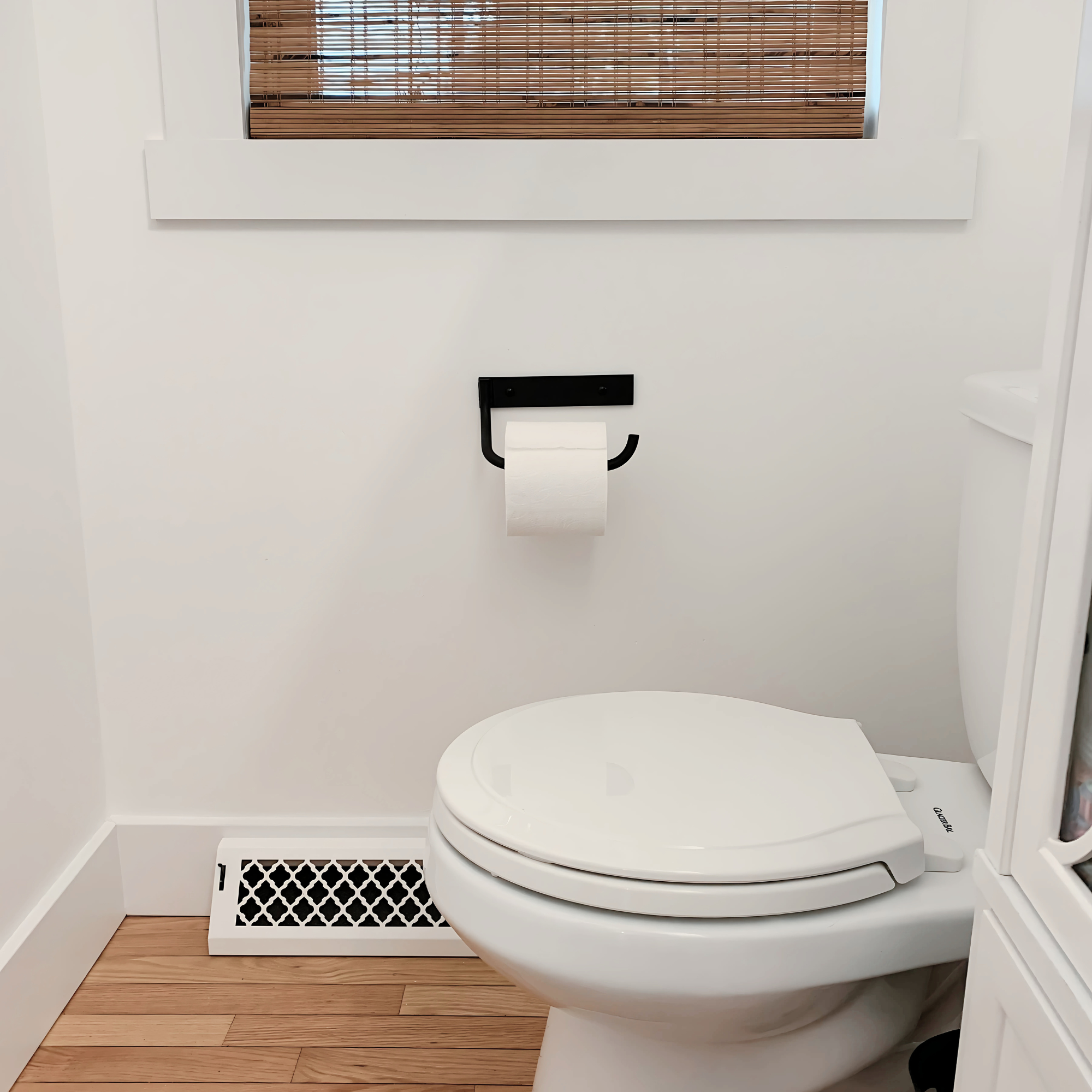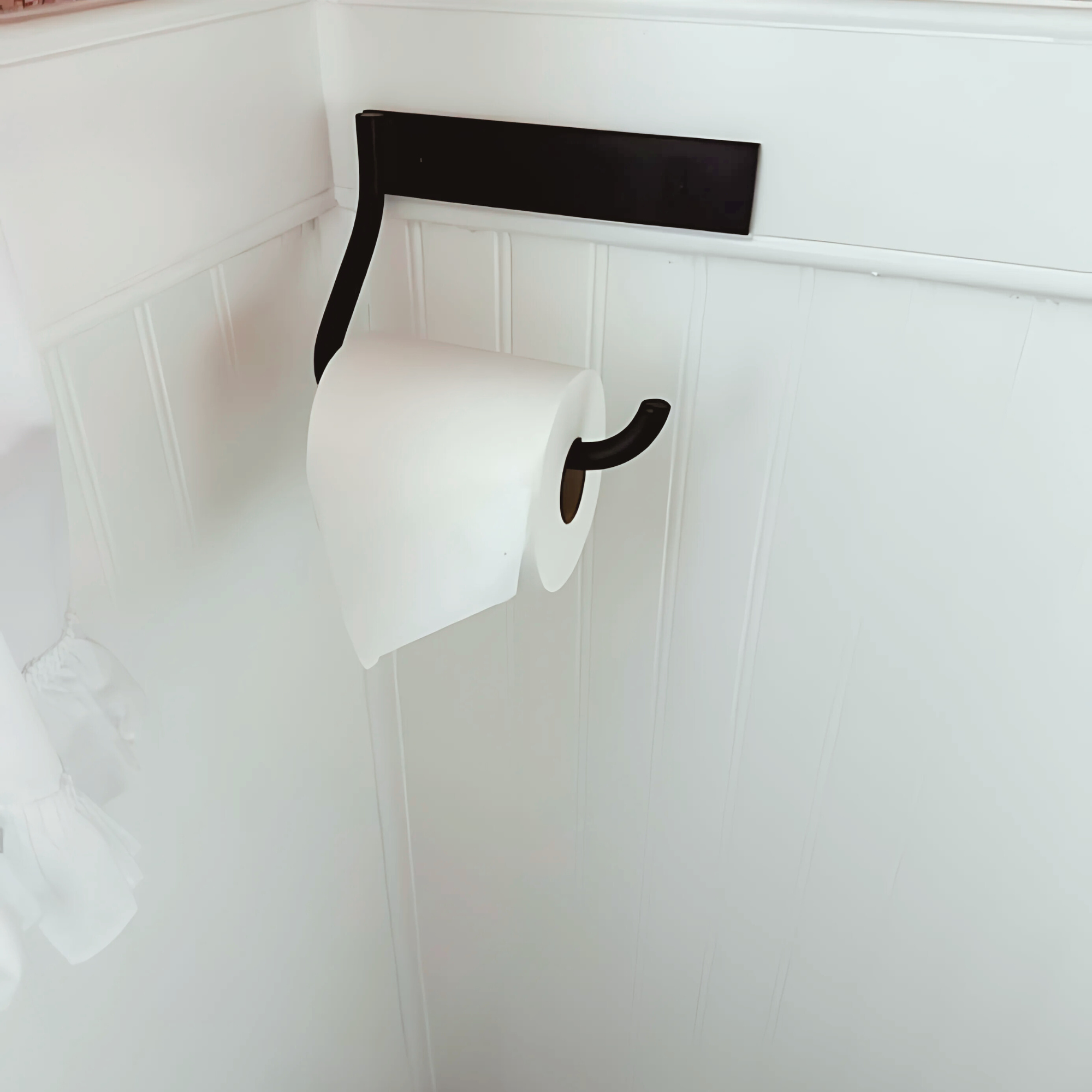 The Howlett Hill — a sleek, industrial toilet paper holder that mounts left or right to fit your bathroom layout. Handmade from ¼" thick solid steel with a ½" round bar to hold your roll. Simple, sturdy, and built to last. Made to order in Central NY by a family shop with 53,000+ sales and 8,000+ five-star reviews.