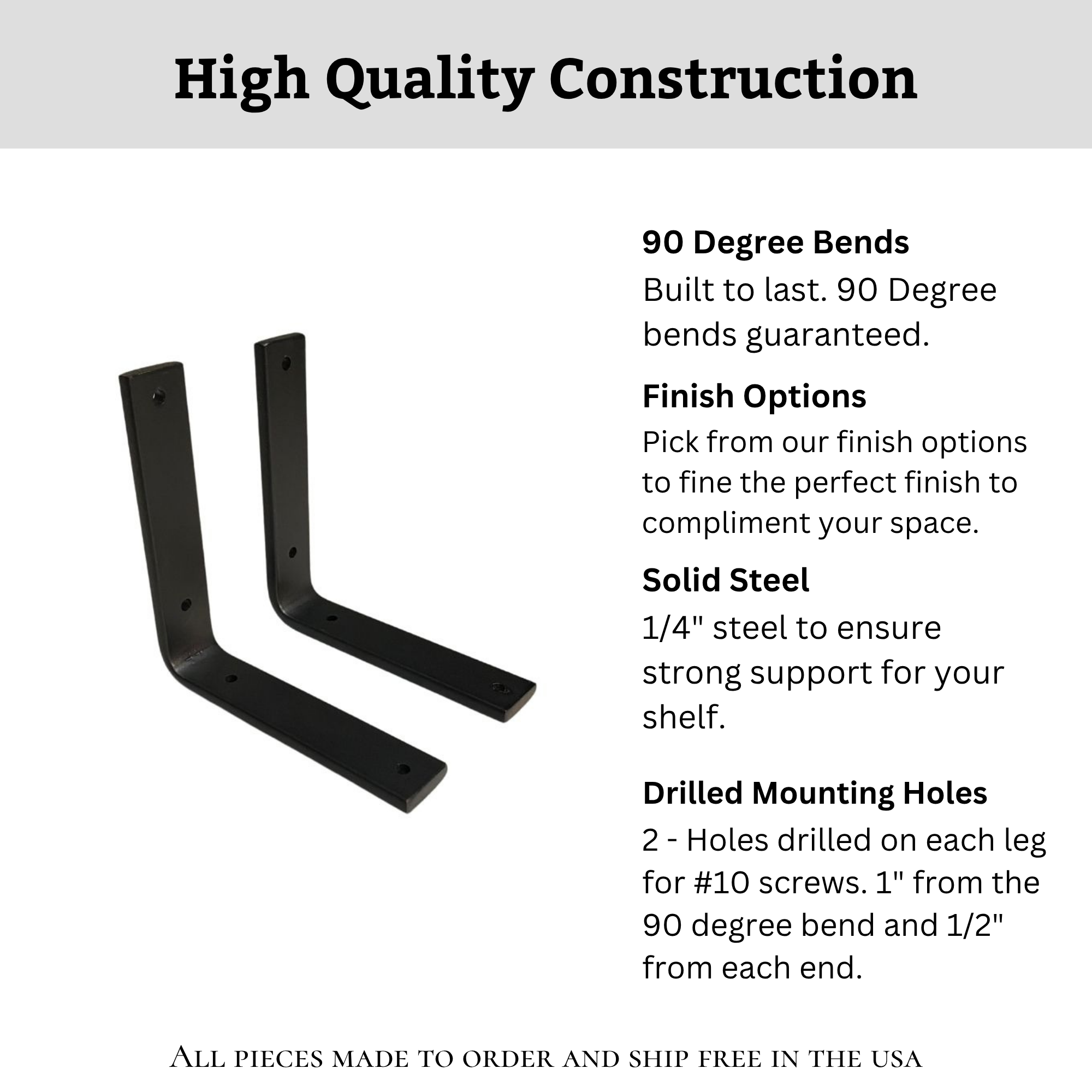 Quality meets simplicity with our Liverpool L Style Support. These handmade steel brackets are created with top-quality, locally sourced ¼-inch thick steel, and our craftsmen pay close attention to detail to maximize strength and aesthetic appeal. Customize your L brackets to meet the demands of any home improvement project, from the kitchen to the garage and all spaces in between. This minimalist design looks great with the tv over mantel design trend!