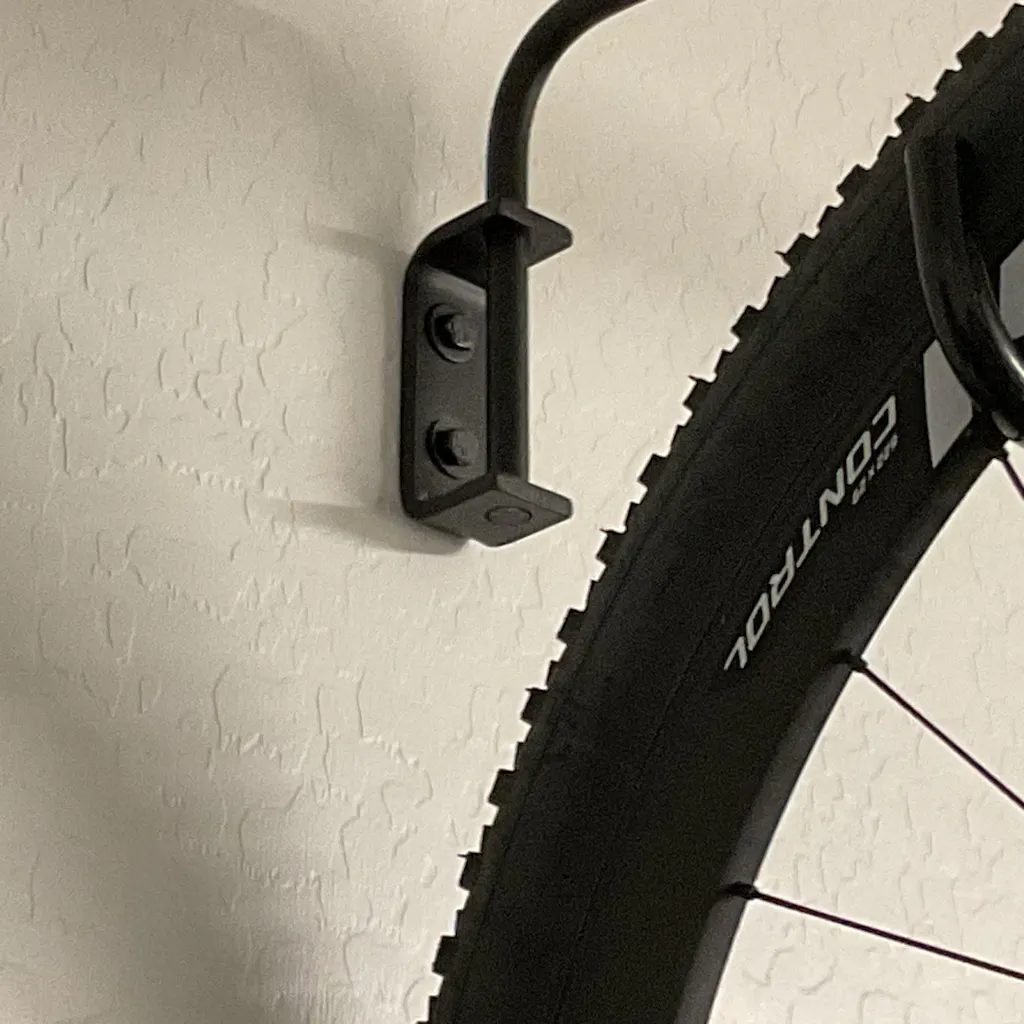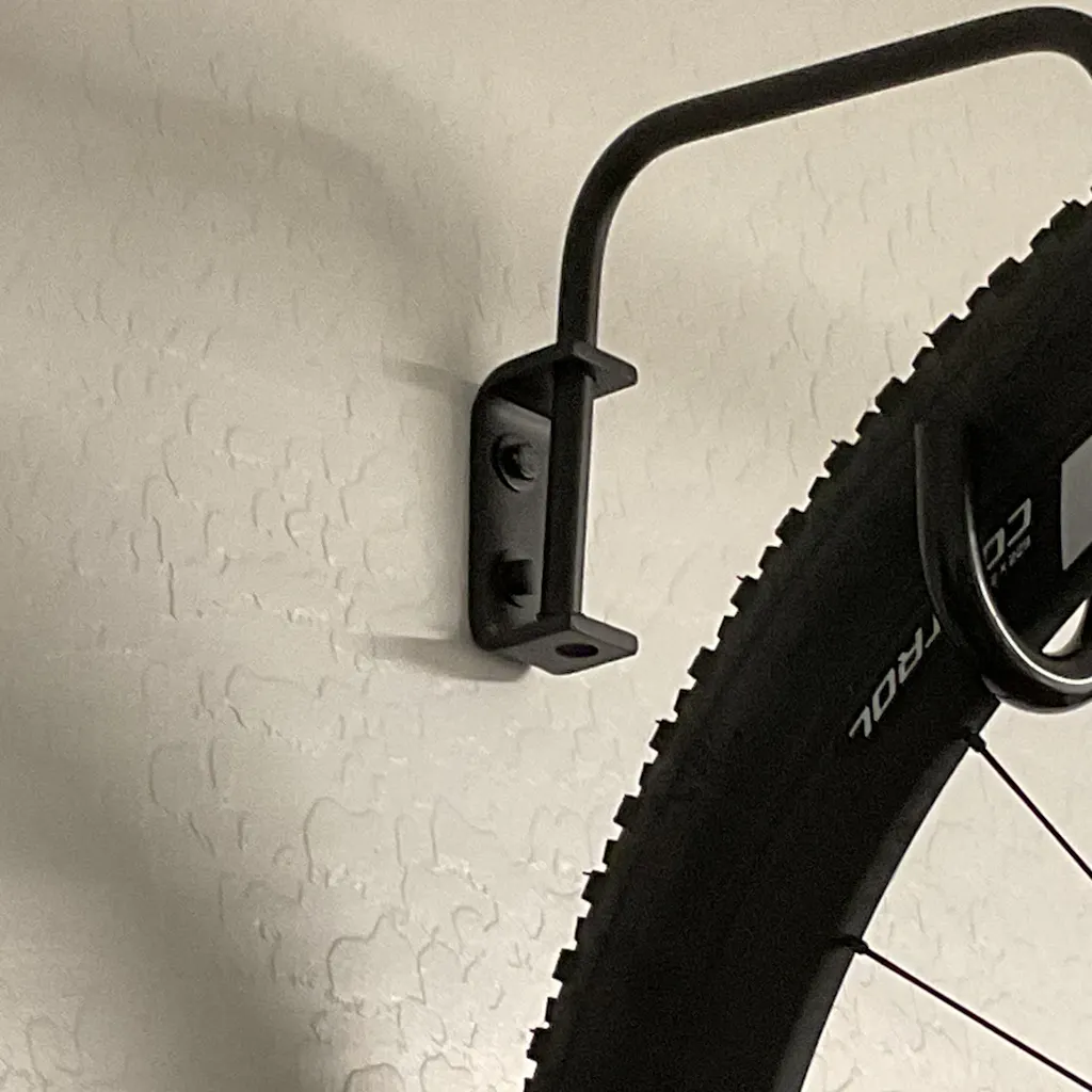 Hang your bikes with ease! These handmade individual bike hooks are able to be installed at different heights. Organize your bikes and free up floor space in your garage/barn. These are made from 1/2" solid bar that is mounted to a C bracket. Bar swivels to allow you to store the hook flush to the wall when they aren't in use.