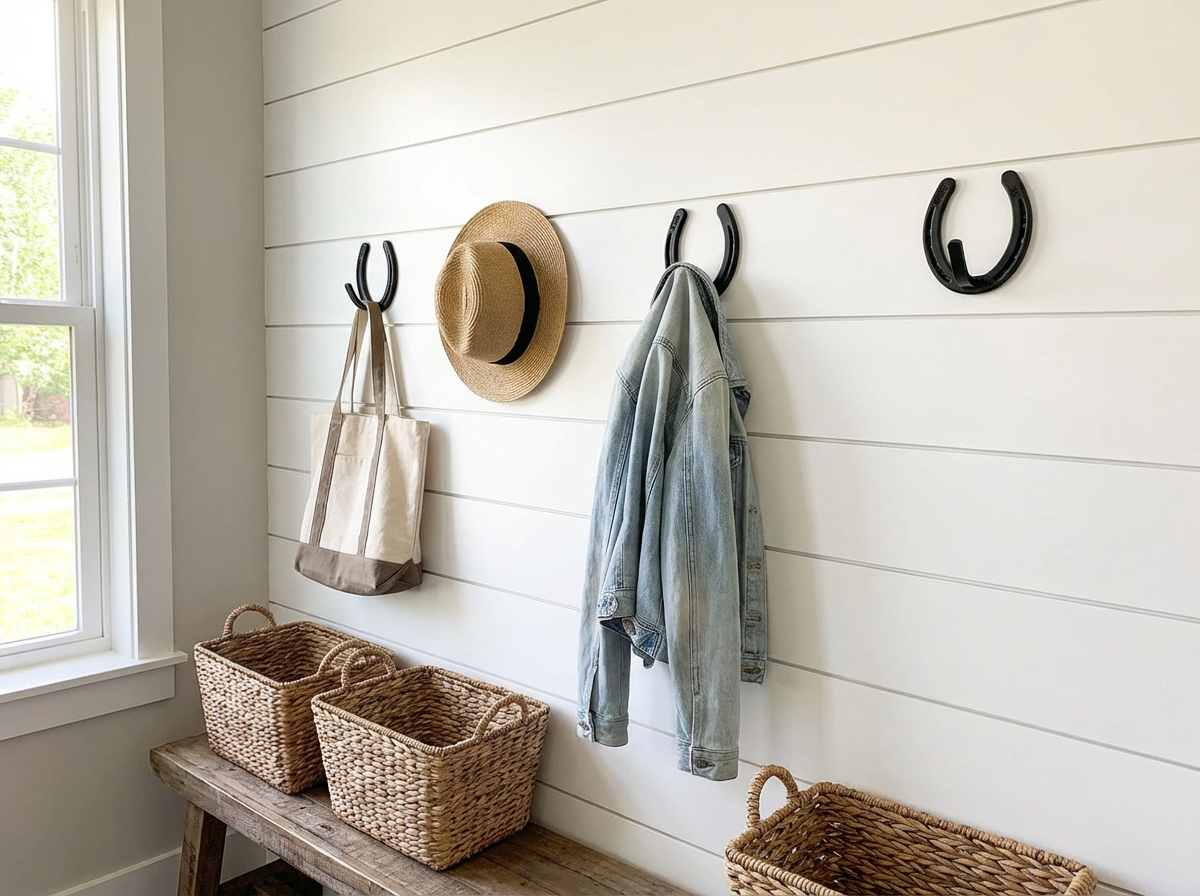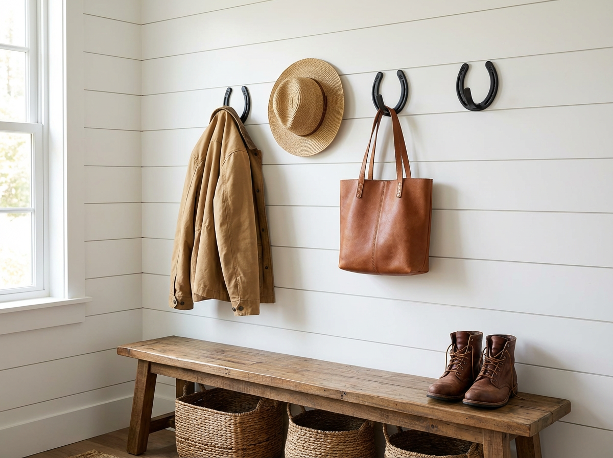 Calling all horse lovers! Our Lucky Marion horseshoe hook is both eye pleasing and functional. Made from a real horseshoe, this piece is strong and durable and can be used virtually anywhere. Mount on a bedroom wall to beautifully organize hats, scarves, or belts. Line them in your entry way for guests to hang their coats and purses on. Even hang one in your stable to showcase your favorite equine’s bridle! Available in two hook sizes (1/2 inch or 1 inch) and four finishes, this hook will be a favorite accent for any country farmhouse.