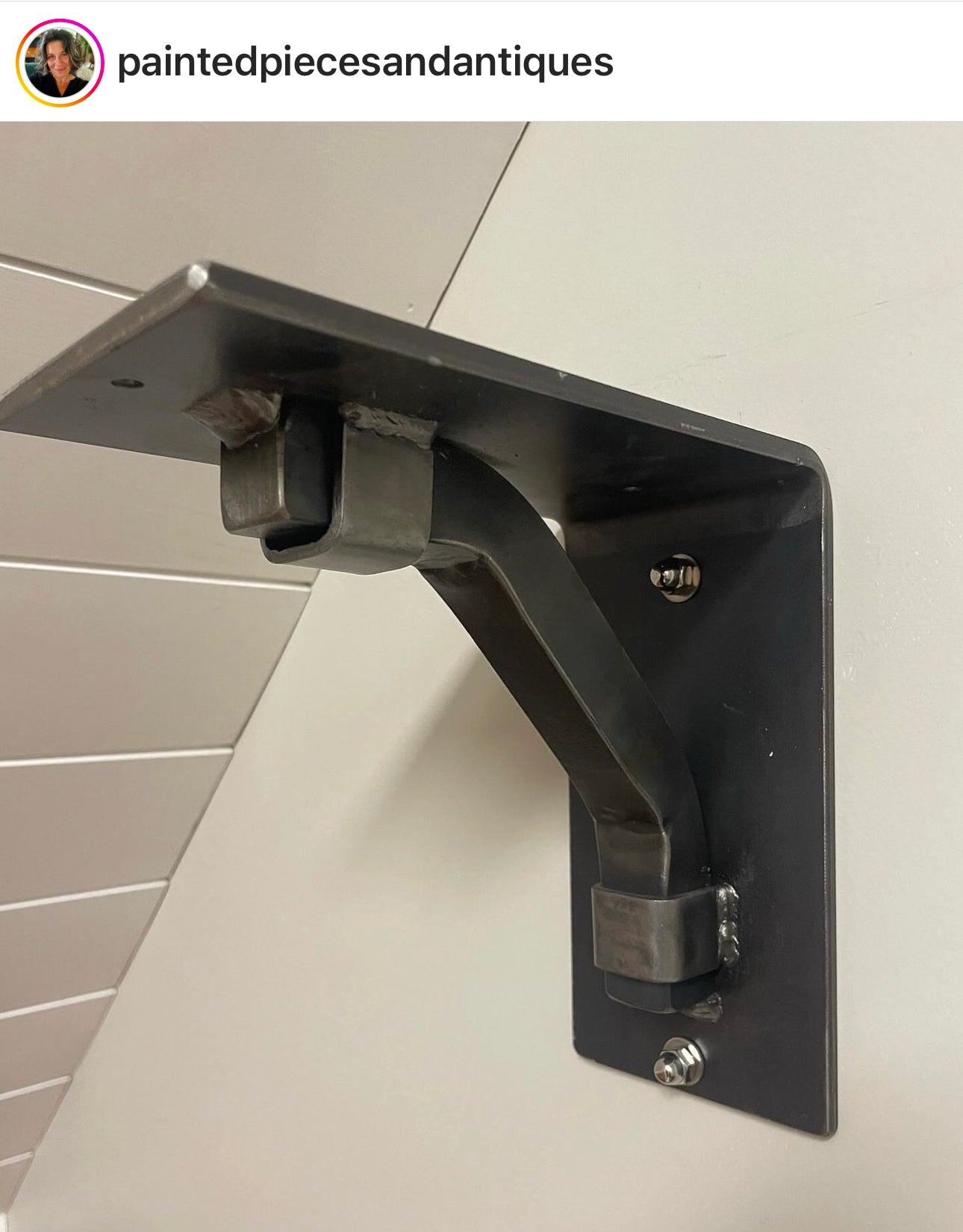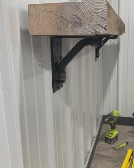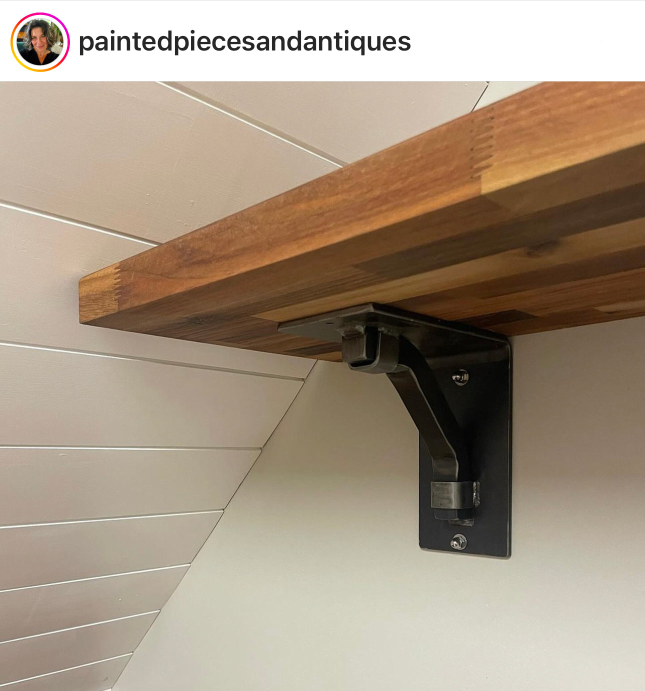 The Rosamond Shelf Support is bold and big in all the best of ways. Enjoy reliable support from our heavy-duty L bracket featuring a one-of-a-kind industrial-inspired design. The 4-inch wide base plate can be customized in length and depth to accommodate your renovation’s unique needs. A sturdy 1-inch wide square support bar is fastened at an angle directly to the base plate, with a decorative support band on each end. This metal bracket’s rustic charm makes a great statement in any beautiful home.