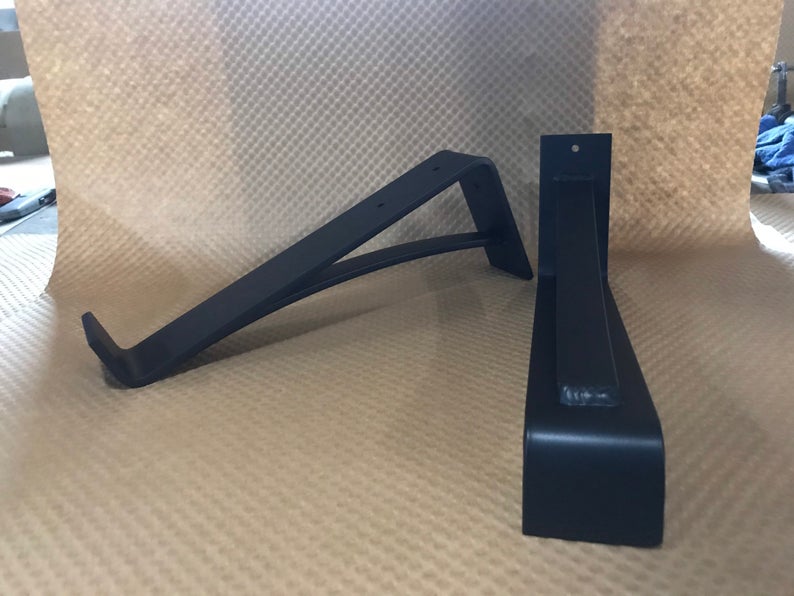 The Saratoga — our 2" wide farmhouse mantel bracket with a 4" lip to secure wood beams and thick shelves. Features a 1" curved support bar for added strength and industrial style. The most compact member of our bestselling Kudlick family — perfect for bathroom shelves, entryway ledges, and lighter floating shelves. Handmade in Central NY by a family shop with 53,000+ sales and 8,000+ five-star reviews.