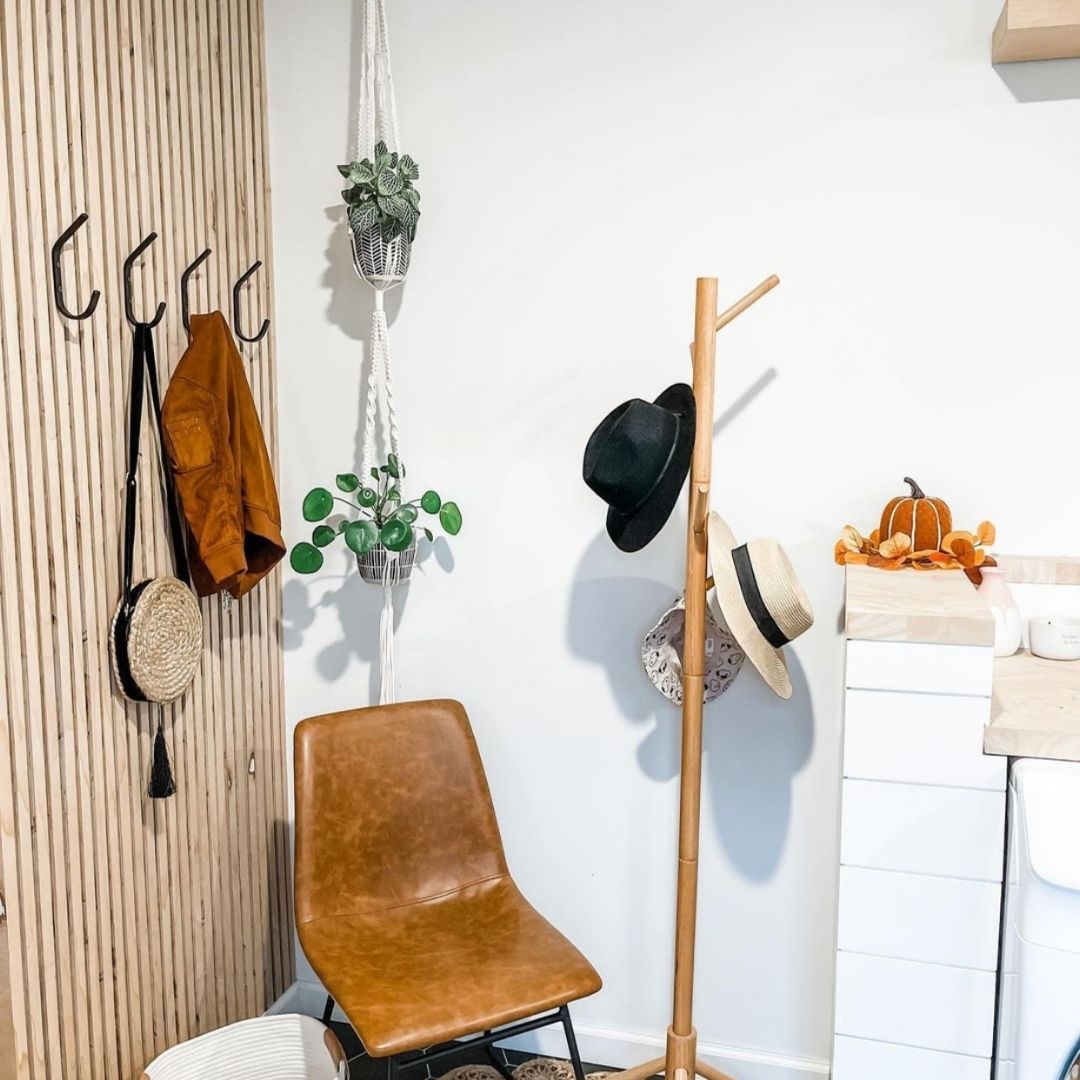 - Versatile Design: The angled top and hooked bottom offer a variety of storage options in a simple yet elegant design.