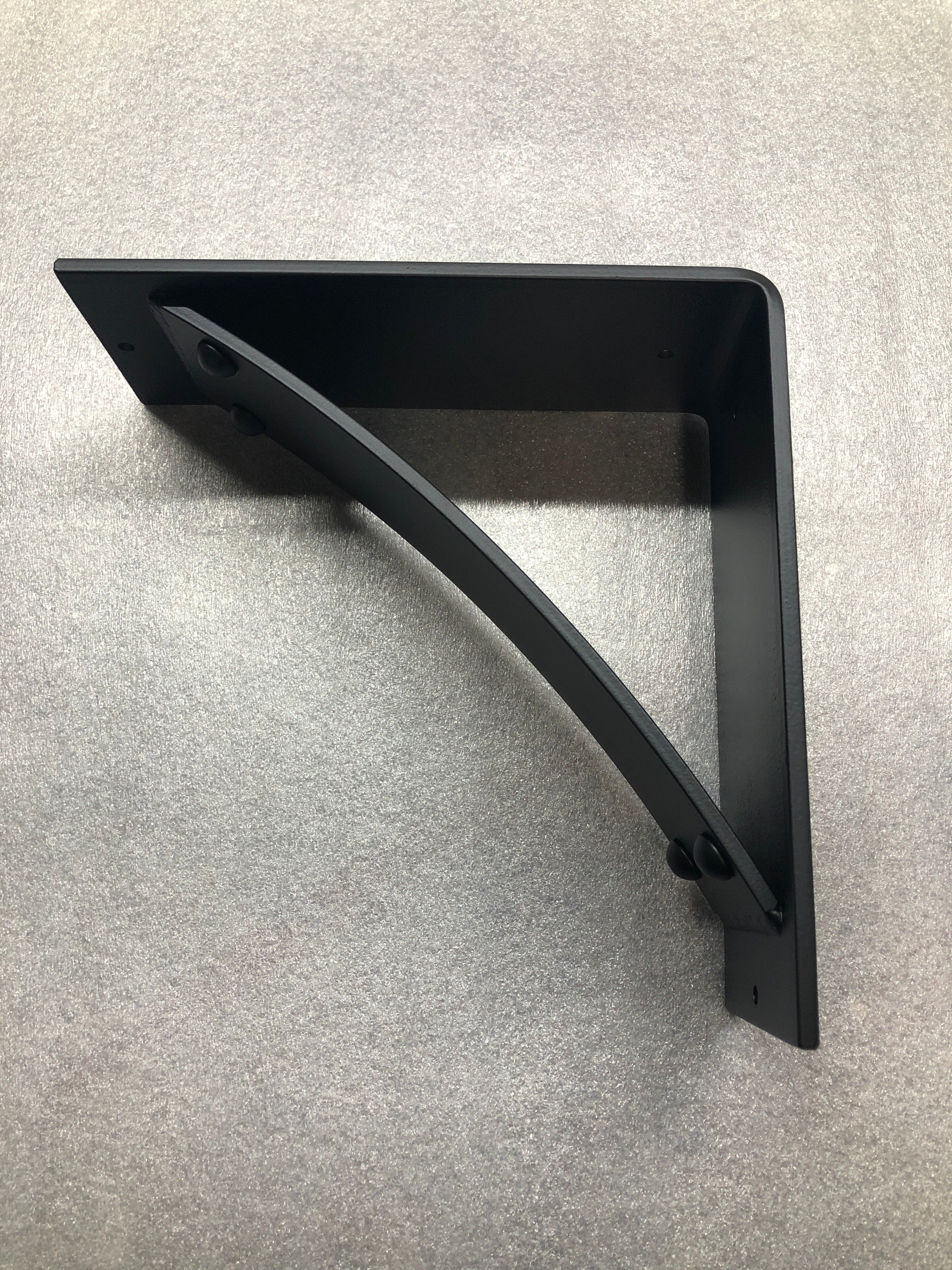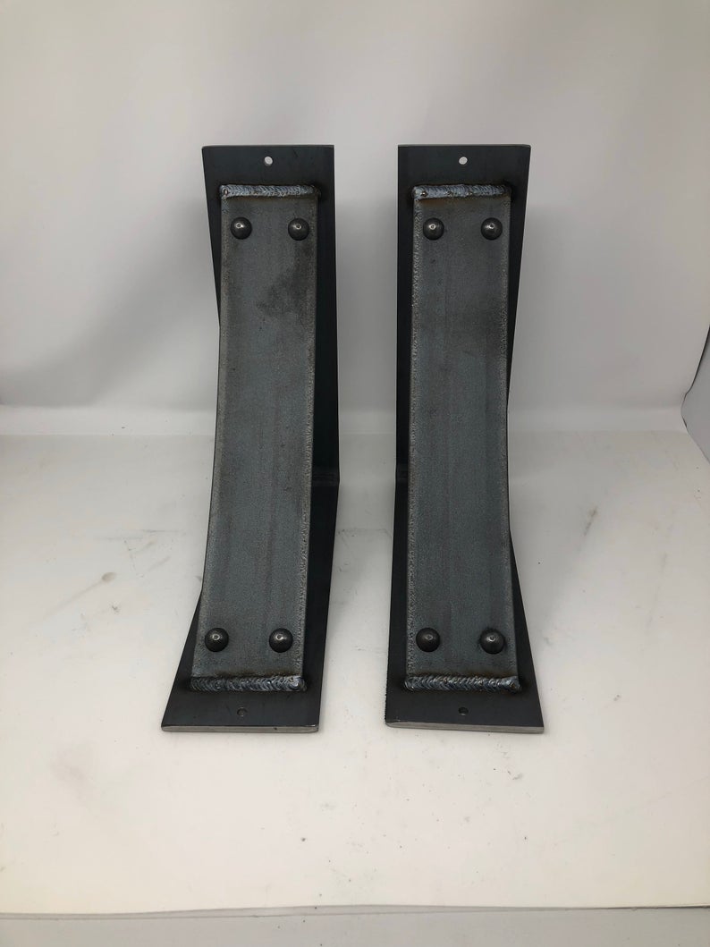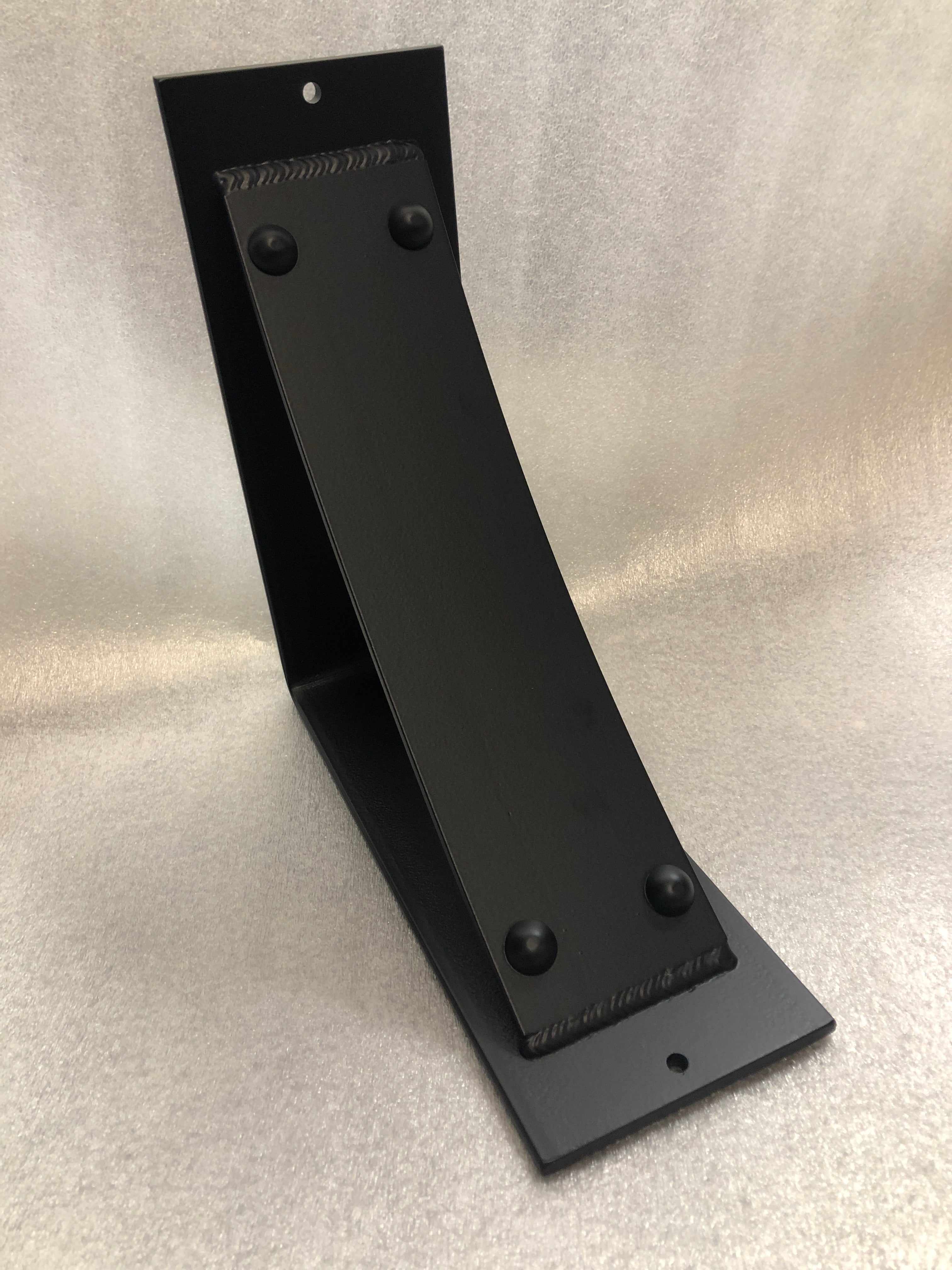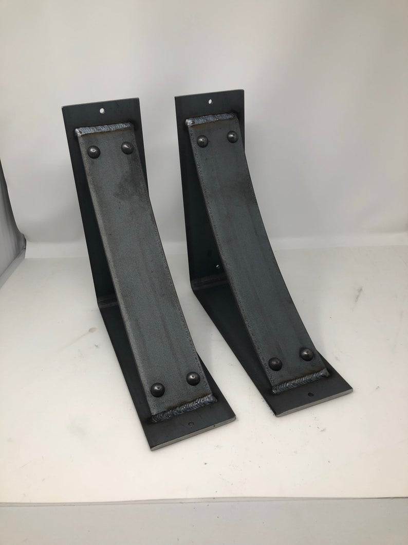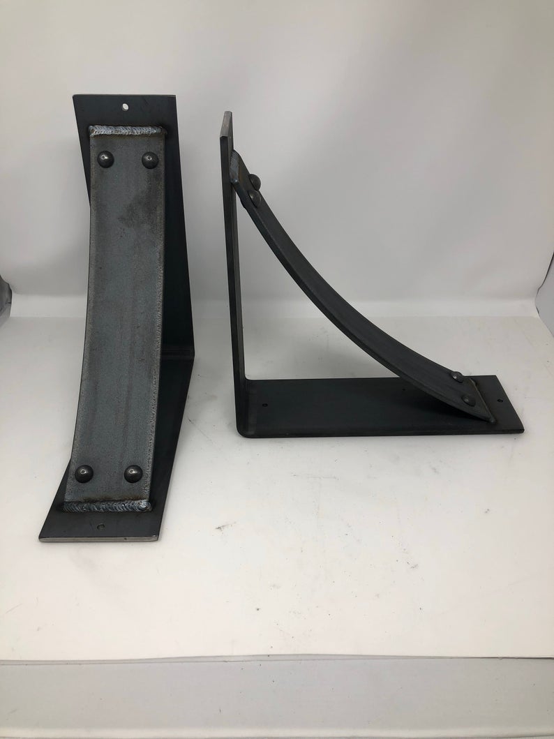 The Industrial Farm Co Utica Supports are a stylish 4 inch wide bracket with a 3" wide curved support bars with rivets added.